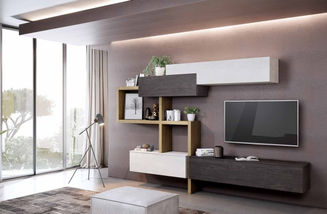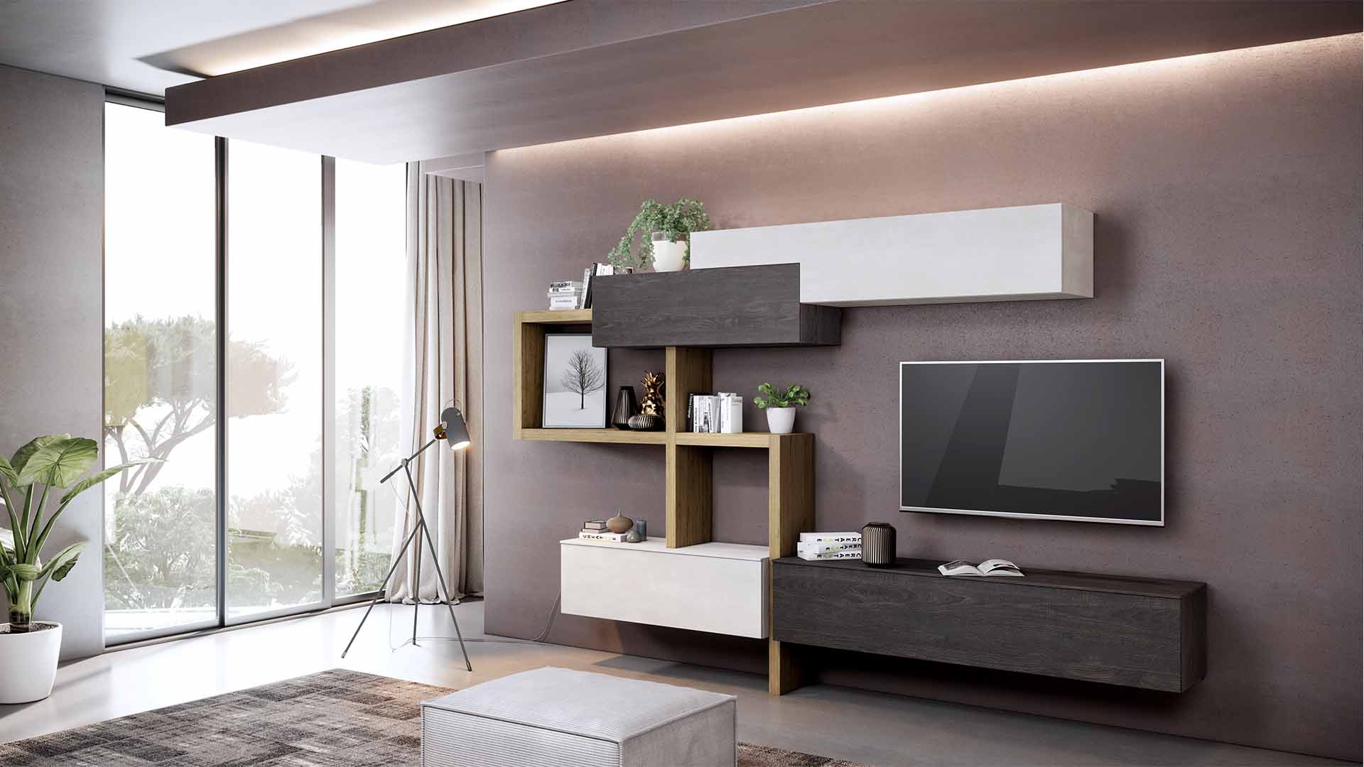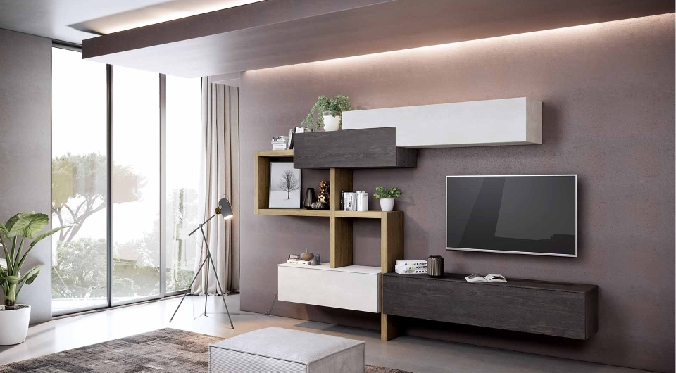 Il modello Stefano è ideale per creare una parete attrezzata su misura sulla base degli spazi a tua disposizione.