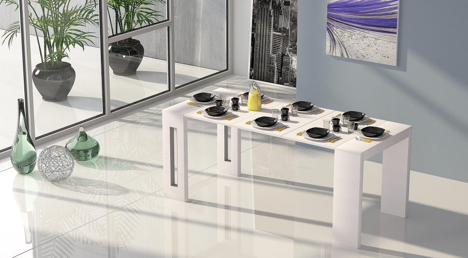 Da consolle a tavolo in tre semplici mosse, Steven è una consolle salvaspazio trasformabile in tavolo per 8 persone. Una soluzione pratica ed elegante adatta ad ogni ambiente, anche quello più piccolo.