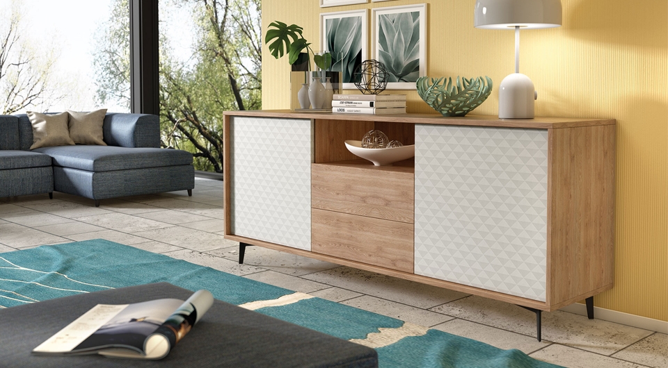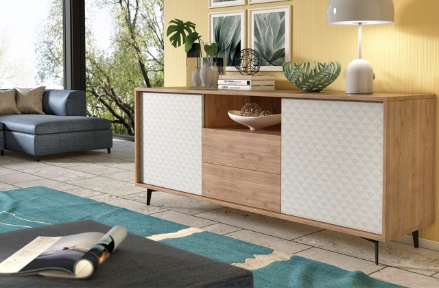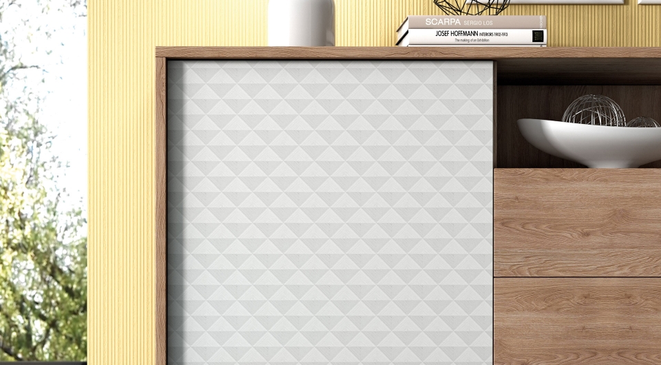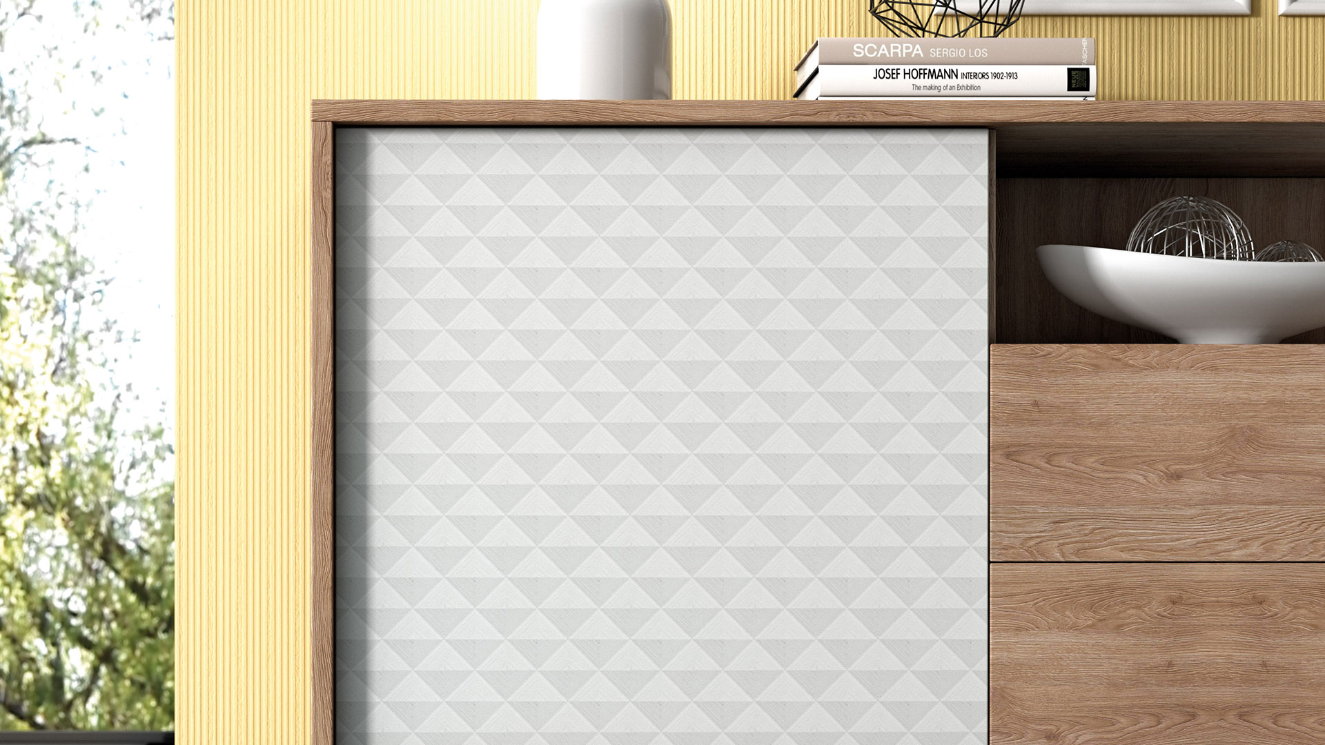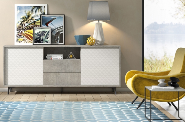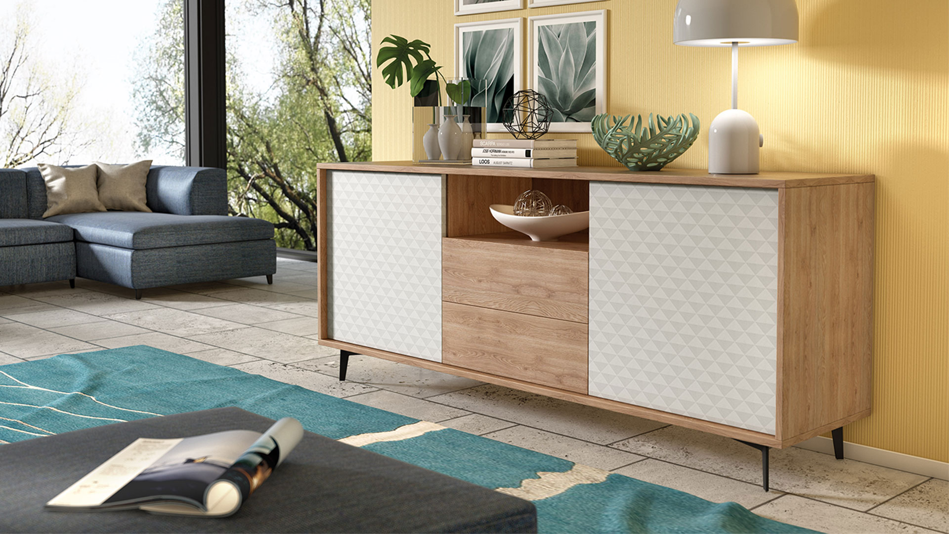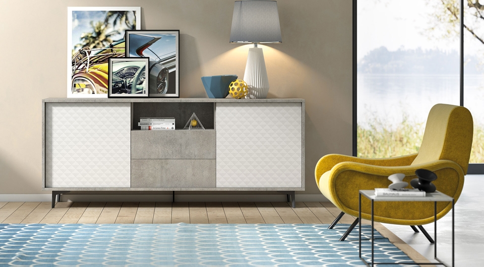 Madia composta da 2 ante e 2 cassetti, realizzata in testure 3d in rilievo effetto dama.