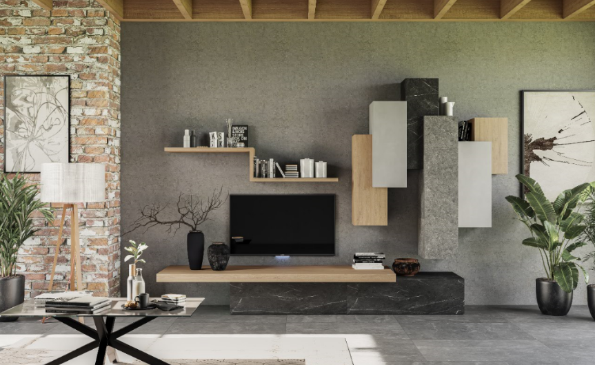 • possibilità di realizzare la parete su misura modificandola in altezza, in larghezza e in profondità, aggiungendo o togliendo pensili, basi o librerie;