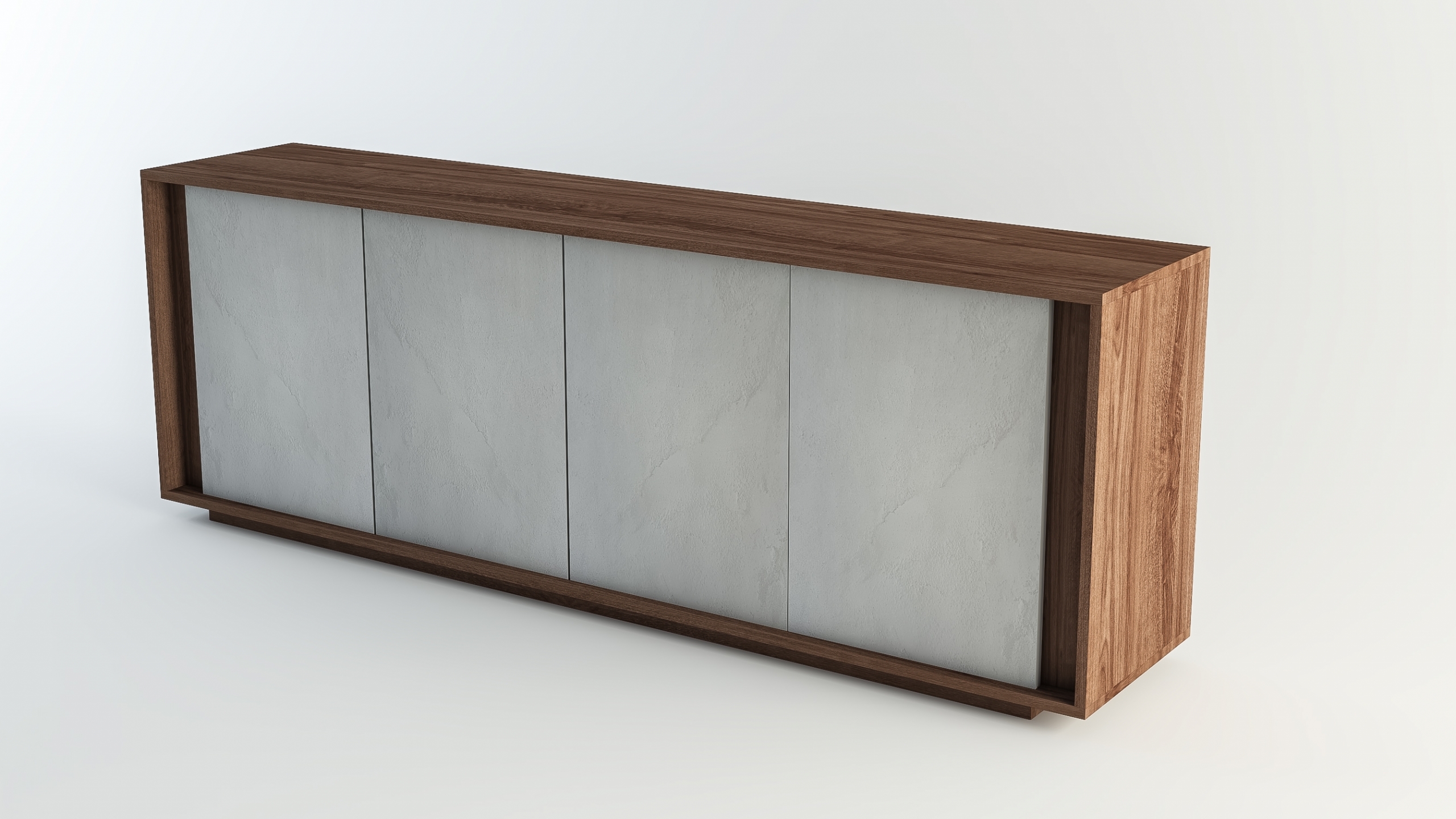Wilfred è una madia composta da 4 ante ammortizzate, in finitura noce.