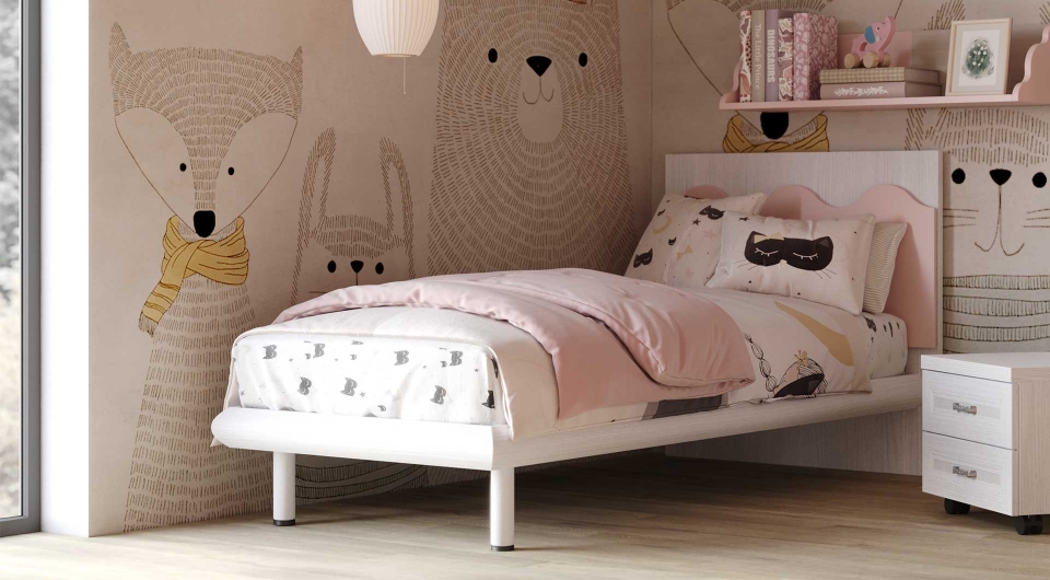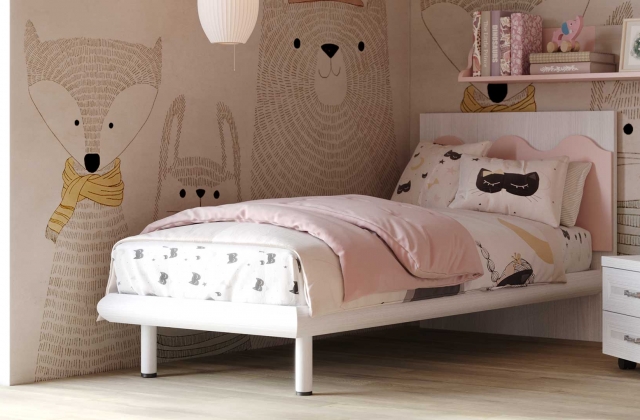 Il modello Yoda è realizzato con testata e giroletto in legno ed è disponibile in diverse finiture. Elemento caratterizzante è il secondo pannello in appoggio sulla testata per il quale a possibilità di scegliere tra tanti vivaci colori e donare così un tocco di estro e personalità alla cameretta.